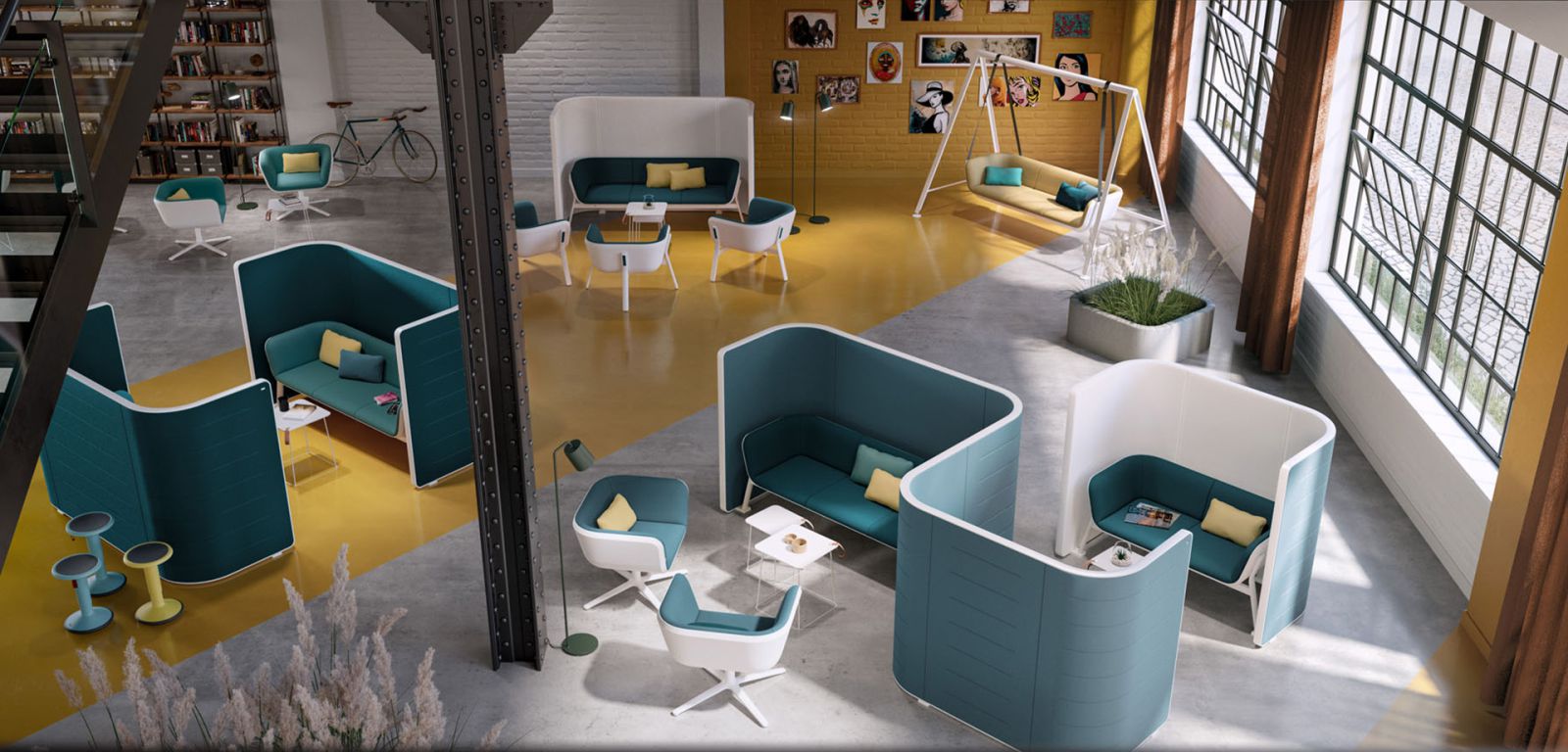 Oggi gli open space da soli non bastano, le aziende hanno bisogno di aree collaborative dedicate, progettate per favorire interazioni rapide, brainstorming e attività di team